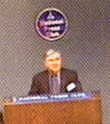 Toen ik de rang kreeg van wat ze in de luchtmacht een grondradar superintendent noemen had ik de leiding over zeven radars, twee landradars en drie gatenvullers langs de kust bij Galveston, Texas. Dat was in de tijd van de atoomonderzeeërs. We moesten er zeker van zijn dat we de hele kust bestreken, dus plaatsten we die gatenvuller-radars waar we de onderzeeërs onder het wateroppervlak niet konden zien. Mijn commandant was kolonel Tibbits, misschien heeft u wel van hem gehoord, hij stuurde mij naar een (SAC) Strategisch Lucht Commando test in Georgia. Ik had op een keer zeven man onder mij aan het werk gedurende de tijd dat ‘project blue book’ aan de gang was. Dus als je melding maakte van zoiets als ‘die UFO’ dan stuurden ze je naar een psychiater en rolde je meteen de luchtmacht uit. Maar we waren dus aan het werk en iemand zei: “Kijk UFO’s!” Dus we draaiden ons allemaal om en daar waren inderdaad drie UFO’s in de lucht, ongeveer een mijl bij ons vandaan 1000 voet boven de grond. Twee onder en één erboven. Eén van ons vroeg: “Wat zie je?” Dus wij overlegden met elkaar. Nu was het zo rond de tijd dat professor Hynek adviseur was van de luchtmacht aan project blue book. Dus zeiden wij tegen elkaar: “Als Hynek hier naartoe komt is het of suggestie of massahypnose of moerasgas.” Iemand zei: “Niets van dat alles (suggestie, massahypnose en moerasgas) is op radar te zien, dus laten we naar beneden gaan om te kijken of ze het daar op het scherm hebben.” Dus gingen we naar beneden om te kijken of de twee mannen in de operations room op het scherm konden krijgen wat we buiten hadden gezien. En dat kregen ze. Wat ongebruikelijk was aan deze voertuigen, was dat ze daar maar bleven hangen voor zo’n 40 minuten. De twee radaroperators namen radarfoto’s en wij waren verbaasd en we moesten van tijd tot tijd even buiten kijken. Ik belde het hoofdkwartier en zei: “We hebben contact.” zij vroegen: “Je bedoelt met SAC?” En ik zei: “We hebben drie vliegende schotels hier buiten.” Ze vroegen: “Maken jullie foto’s?” Ik vertelde hun: “We maken foto’s en ook radarfoto’s.” OK, ze zeiden dat ze een koerier stuurden om alles op te halen. Maar toen we alle foto’s ontwikkelden in mijn fotolab, gaf ik elk van mijn mensen zes foto’s de man. Ik zei “Bewaar deze voor je kleinkinderen.” Dus ik heb foto’s, zij hebben allemaal foto’s. Ik hoop dat ze al gekopieerd zijn dan kunnen jullie ze zelf zien zoals ik ze zag. Ik zal blij zijn de regering dit te vertellen als ik voor hen moet getuigen. In ieder geval bedank ik iedereen die hier vandaag aanwezig was. Dank u.