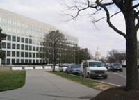 Ze droegen hem op een draai van 360 graden te maken. Wanneer je met een 747 een volledige draai wilt maken dan kost je dat een paar minuten en je hebt er een hoop ruimte voor nodig. Maar de UFO bleef bij hem. Hij zat dan weer voor, naast of achter de 747. Zij zagen hem op 1 uur voor de 747 op een afstand van 8 mijl en op de volgende zwaai van de radar, wat ongeveer 10 seconden later is, zat hij achter de 747 op een afstand van 7 of 8 mijl. Het bleef aldoor op een afstand van 7 of 8 mijl. (Neem notie van de niet lineaire manoeuvres van deze UFO, het afleggen van vele mijlen in slechts 10 seconden. Dit wordt bekrachtigd door tientallen andere radargebeurtenissen in de getuigenissen van andere getuigen. SG) Toen we dat allemaal achter de rug hadden en we de volgende dag terug waren in Washington, belde de directeur (van de FAA) naar beneden en wilde weten of we nu wel of geen probleem hadden. Mijn chef vertelde hem dat we er een videoband van hadden gemaakt en dat het erop leek dat er iets was geweest daar. Nou ja, de FAA directeur vroeg of we naar boven konden komen en of we hem een snelle vijfminuten samenvatting konden geven van wat er was voorgevallen. Dus gingen wij naar de 10e verdieping (van het hoofdkantoor van de FAA in Washington DC) en gaven een vier of vijf minuten durende briefing aan de directeur, in die tijd was dat admiraal Engen. Hij vroeg vervolgens: “Heb je die video bij je? Kun je mij die video laten zien?” Ik zei ja natuurlijk, we kunnen hem zo afspelen. Dus wij stopten de band in zijn videorecorder en hij begon ernaar te kijken. Na ongeveer vijf minuten vertelde hij zijn personeel om zijn vergaderingen af te zeggen. Dus hij bekeek alles, iets meer dan een half uur. Toen dat achter de rug was vroeg hij: “Wel, wat denken jullie ervan?” Mijn chef gaf een politiek antwoord en zei dat hij er niet zeker van was wat het was… Zijn aanpak was, vertel niemand erover totdat ik je zeg dat het okay is. De volgende dag kreeg ik een telefoontje van iemand van de wetenschappelijke staf van president Reagan of van iemand van de CIA, ik weet niet meer zeker wie het was. Zij hadden wat vragen over het incident. Ik zei dat ik niet wist waar hij het over had en dat hij waarschijnlijk de admiraal (FAA directeur Engen) moest spreken. Een paar minuten later belde de admiraal naar beneden en zei dat hij een briefing had opgezet, morgen om 09.00 in de ronde kamer, breng al je spullen mee die je hebt en neem iedereen mee en geef hen wat ze willen, wij willen ervan af. Laat ze doen wat ze willen. Dus bracht ik al de mensen van het technisch centrum bijeen. We hadden allerlei soorten dozen met gegevens die we hadden uitgeprint en het vulde de hele kamer.