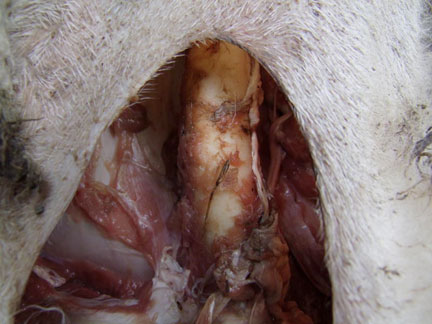 te zijn. Die ooi miste ook het bovenste deel van haar ruggengraat.